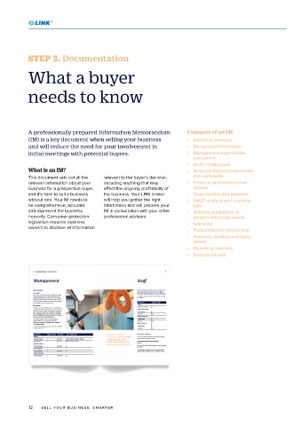 (IM) is a key document when selling your business • Executive summary